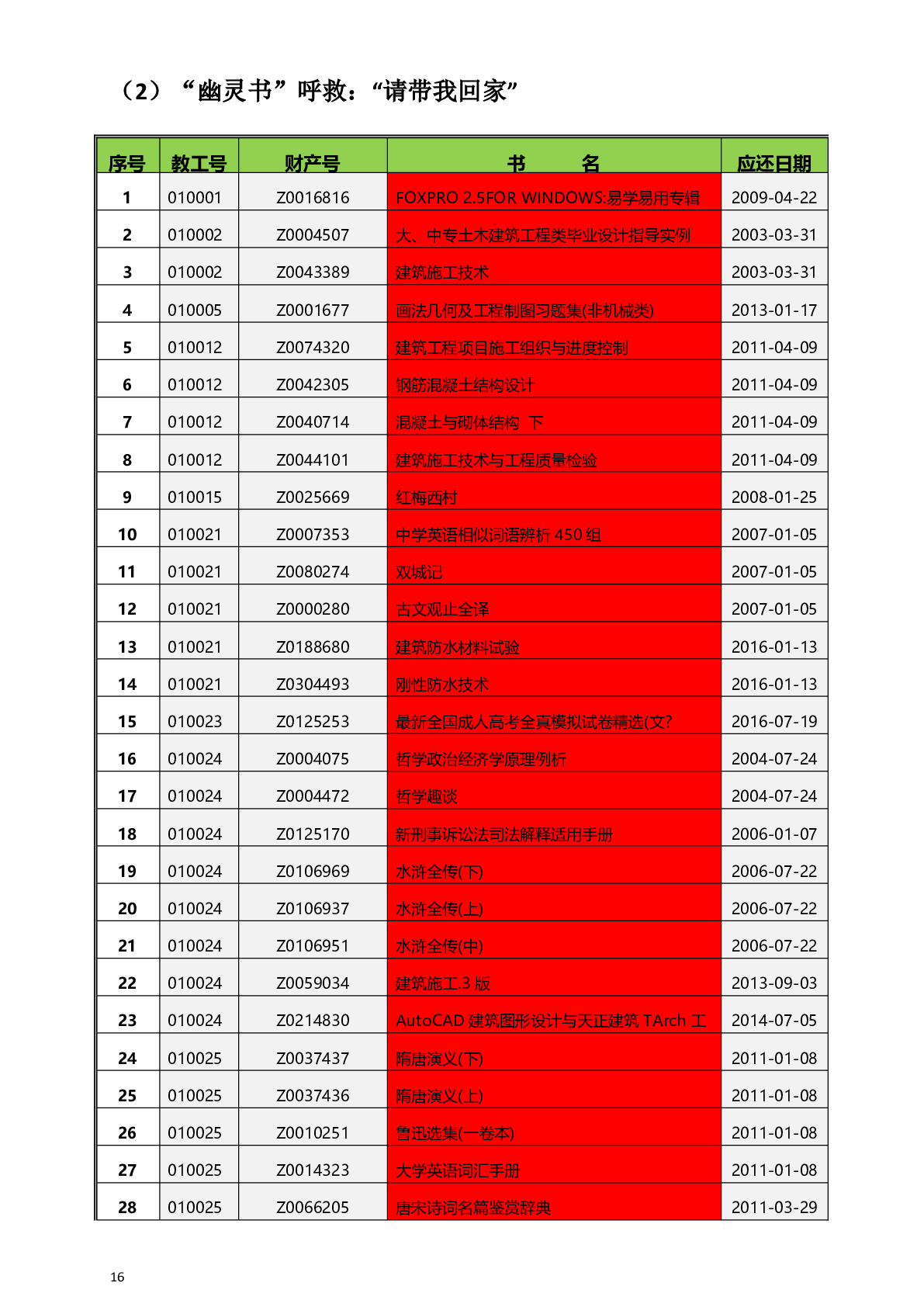 图书捐赠名单