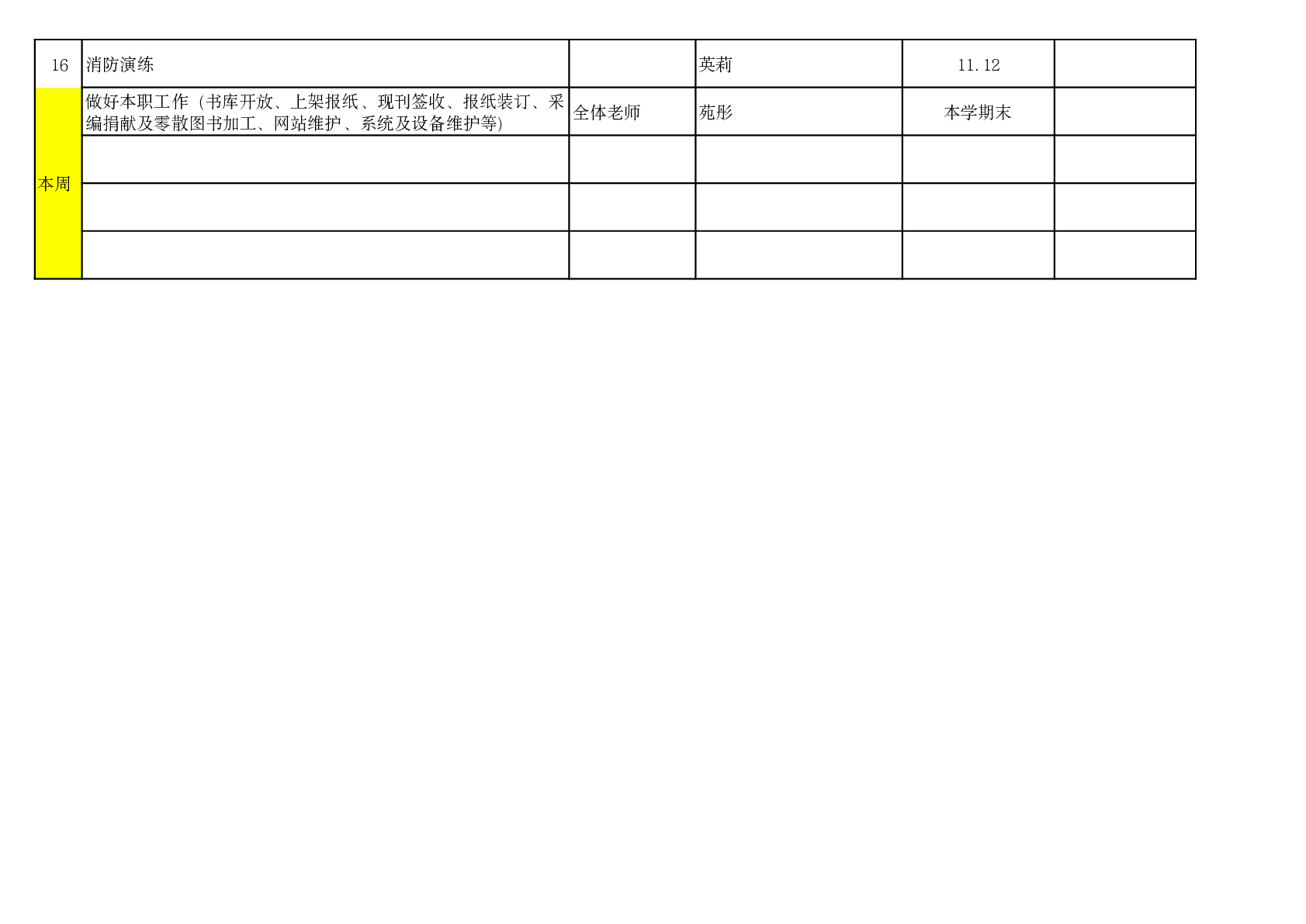 2025-2026学年第一学期第10周(11.3-11.7)图书馆工作安排