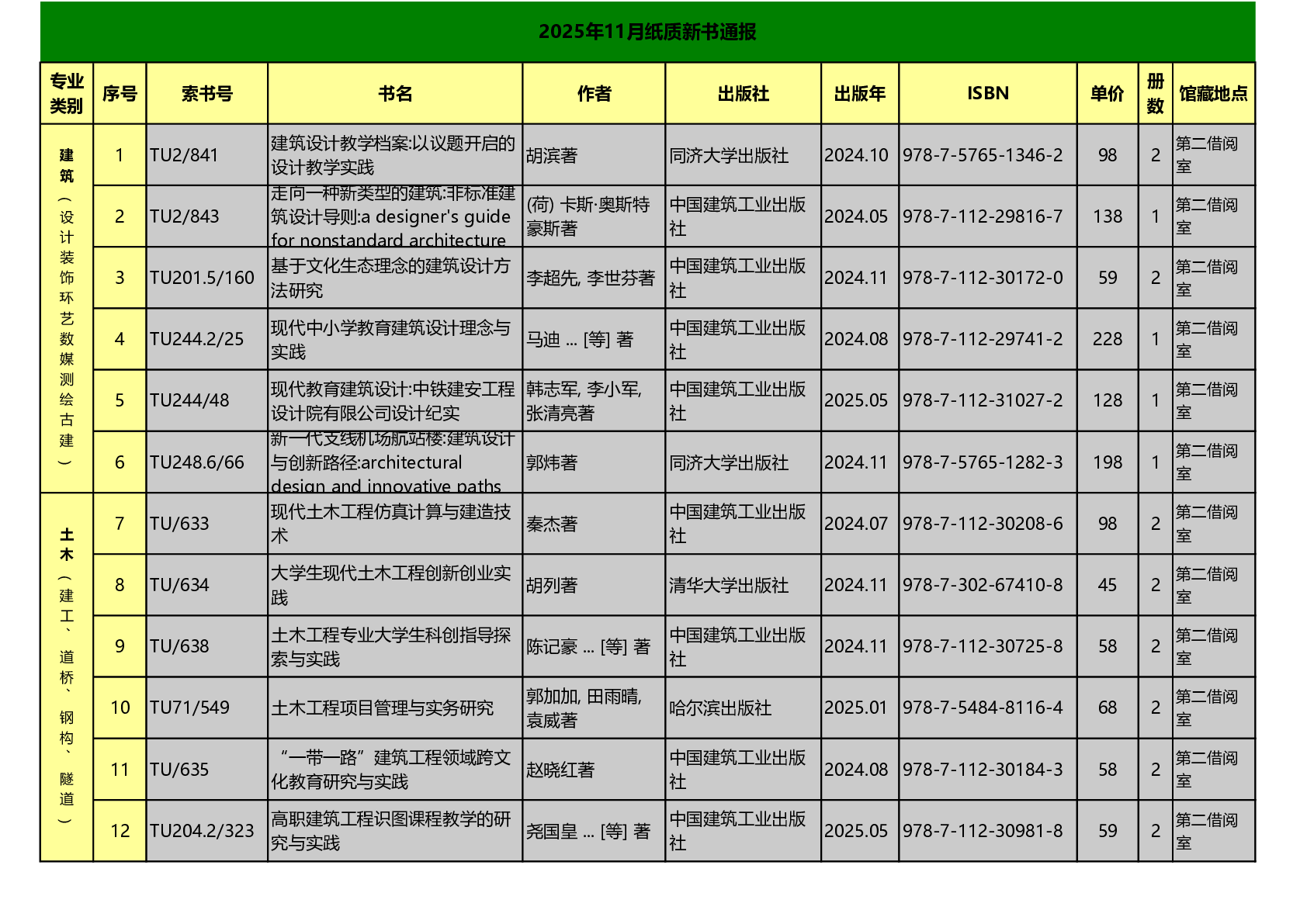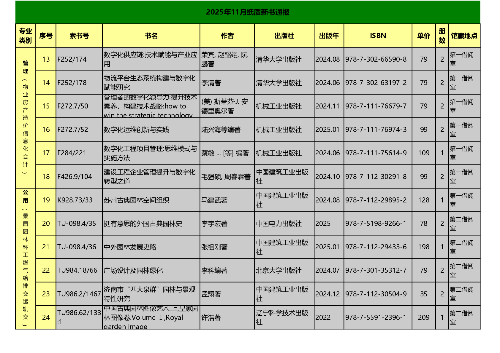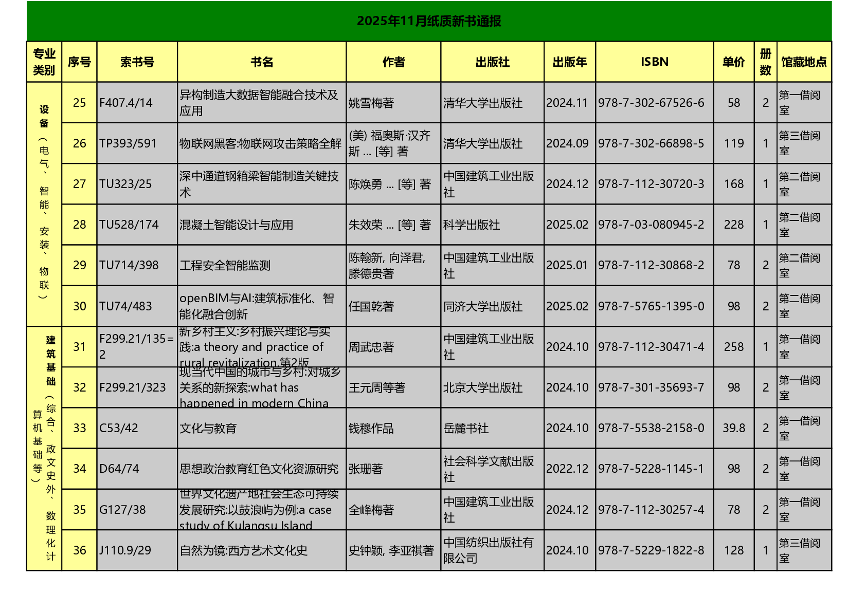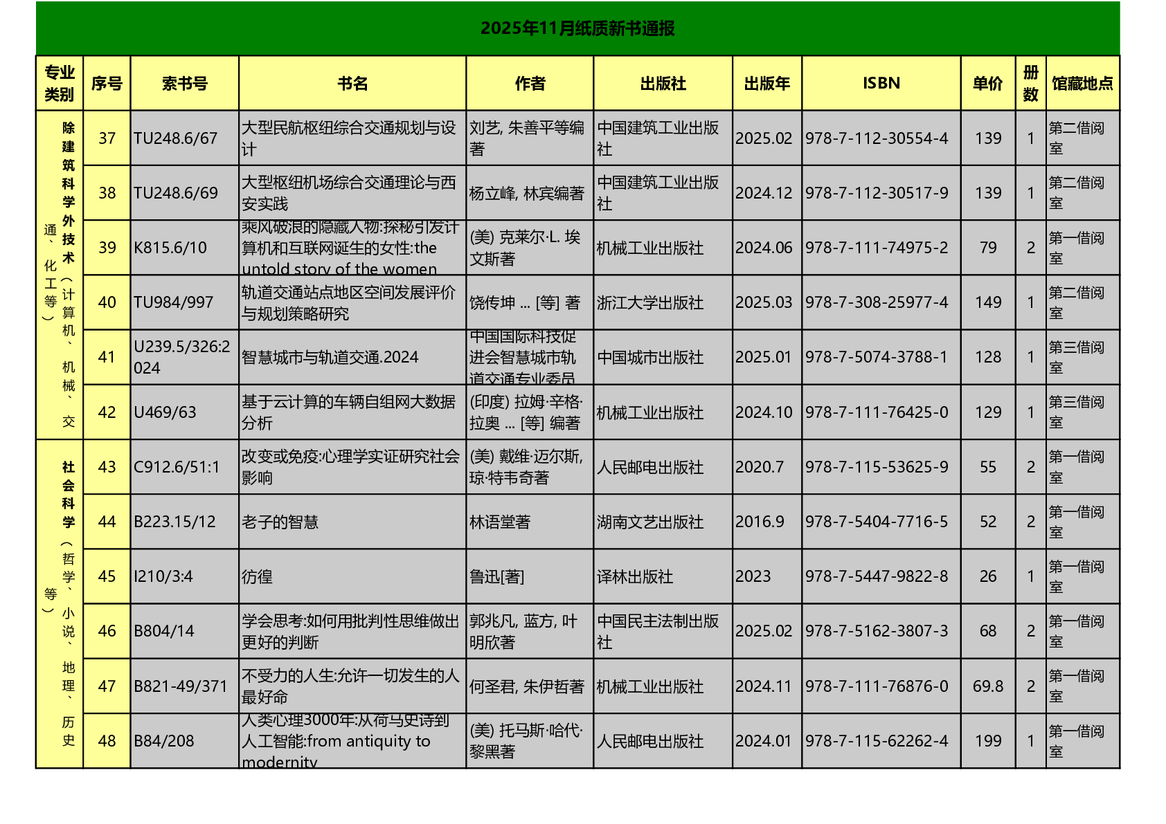 图书馆2025年11月纸质新书通报